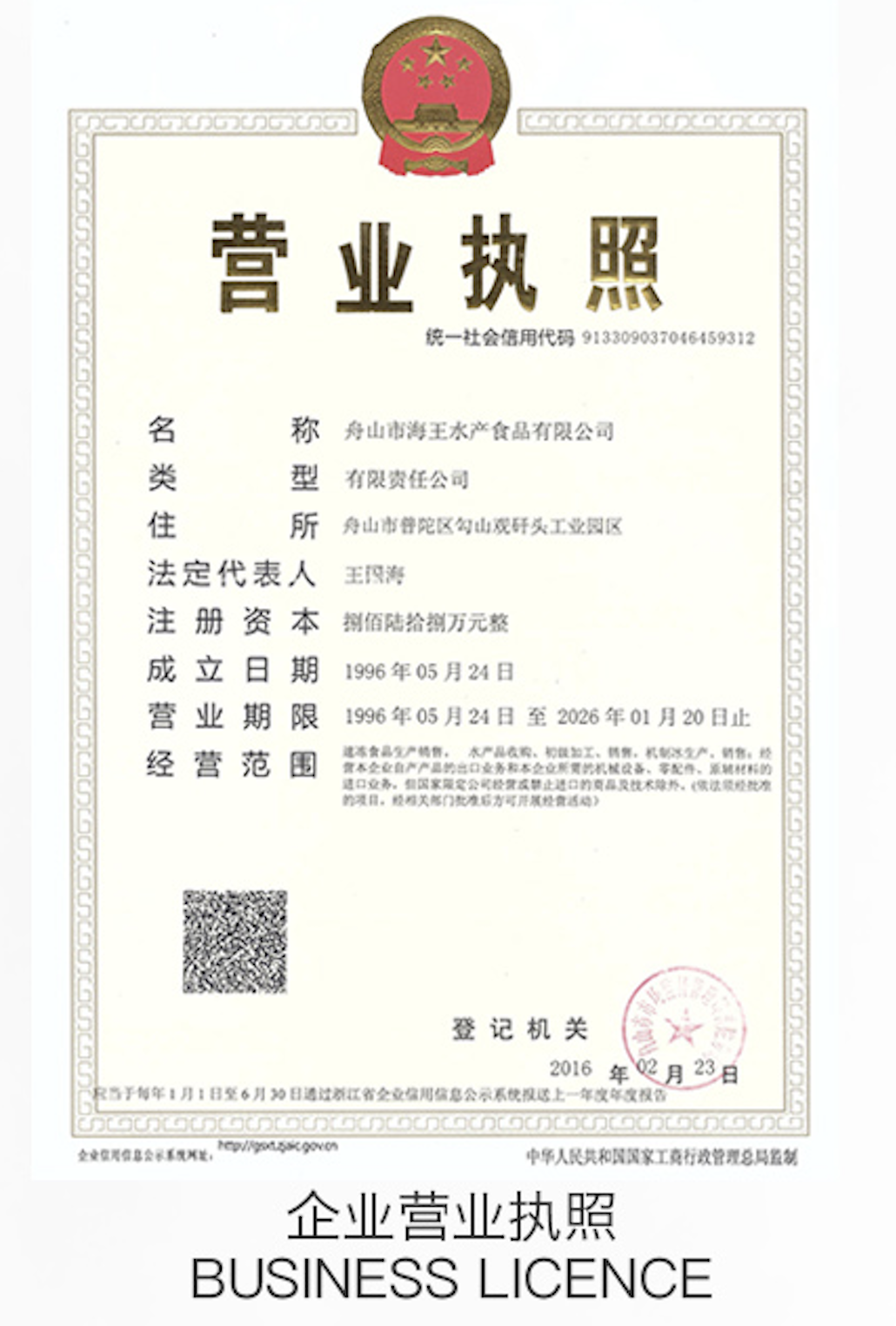舟山市海王水产食品有限公司成立于1996年,是一家领先的海产品制造与出口企业,专注于研发、加工和生产优质的水产食品。公司拥有先进的生产设备,厂区占地面积16,000平方米,建筑面积10,000平方米,配备5,000吨的存储容量和年产9,000吨水产品的生产能力,具备强大的生产和供应能力以满足全球市场需求。公司严格遵循最高的质量与安全标准,拥有HACCP、BRC、IFS、FDA、SMETA和ISO22000等国际认证,确保产品符合全球市场的严格要求。